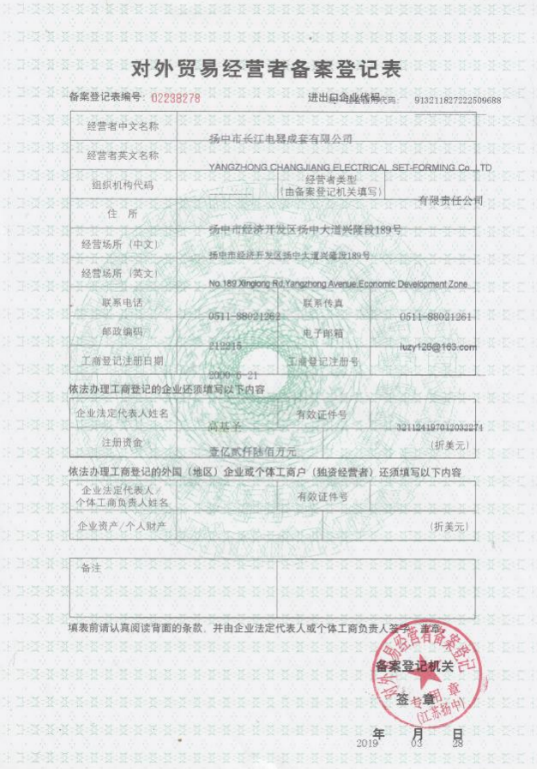 對外貿易經營者備案登記表