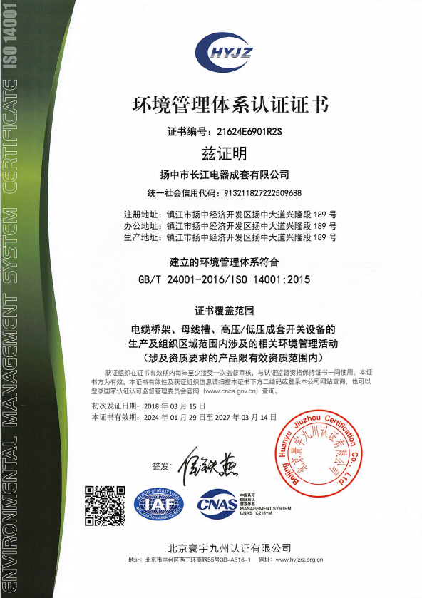 環境管理體系認證證書